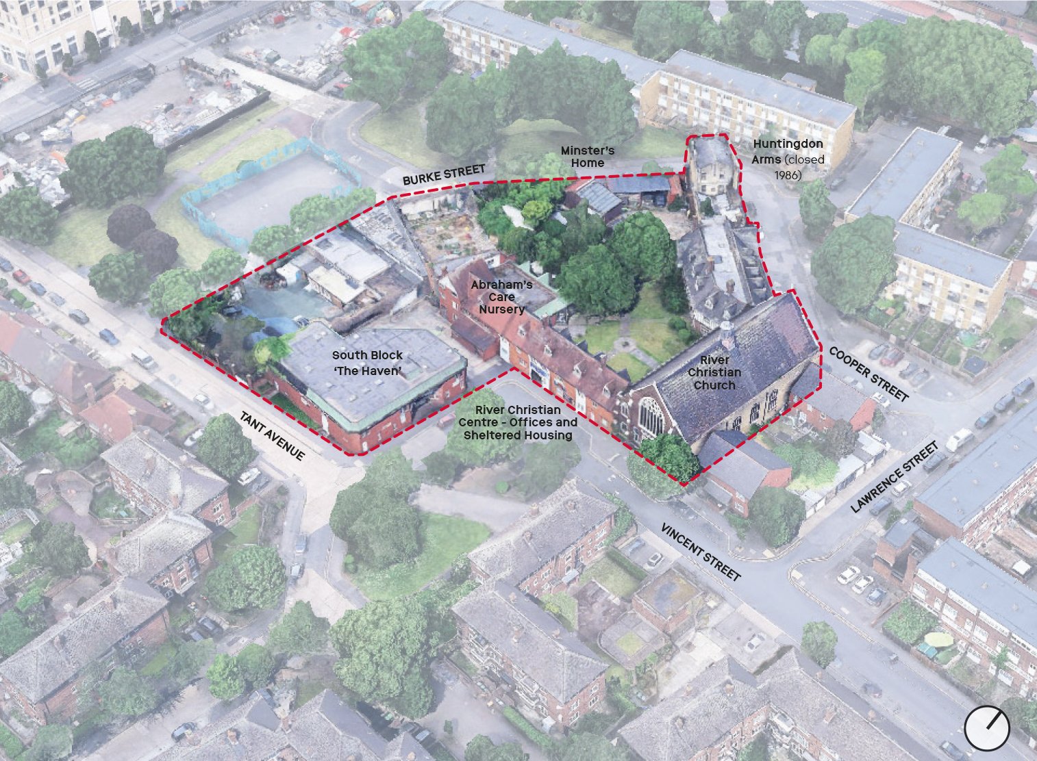 The site is in Canning Town South, within the Canning Town Estate. It is an ‘island’ site surrounded by local roads; Burke street and Cooper Street to the north, Lawrence Street to the east, Tant Avenue and Vincent Street to the South. The site contains a number of buildings of varying condition and quality.